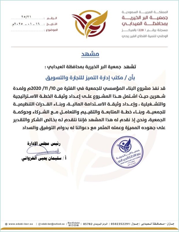 مشروع يستهدف تعزيز الهياكل والعمليات في الجمعيات، بهدف تحقيق أقصى قدر من التأثير والفعالية في مهمتها وأهدافها، بيسر وسهولة، ويتضمن هذا البناء تطوير القدرات الإدارية والمالية والبرامجية، مع التركيز على بناء الثقة والشفافية داخل الجمعية ومع الشركاء الخارجيين، بهدف تعزيز استدامة ونجاح الجمعية الأهلية في تحقيق رسالتها وتحقيق تأثير إيجابي دائم في المجتمع