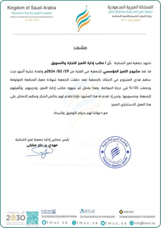 التميز المؤسسي في الجمعيات هو عملية مستمرة تهدف إلى تعزيز الكفاءة والجودة في تقديم الخدمات وتحقيق الأثر المجتمعي المستدام. يعتمد على تطبيق أفضل الممارسات الإدارية لتعزيز الأداء، تطوير الموارد، وتحقيق رضا المستفيدين. كما يسهم التميز في زيادة الشفافية والمصداقية، وتحفيز الابتكار والشراكات الاستراتيجية لضمان استدامة العمل وتنمية أثره.